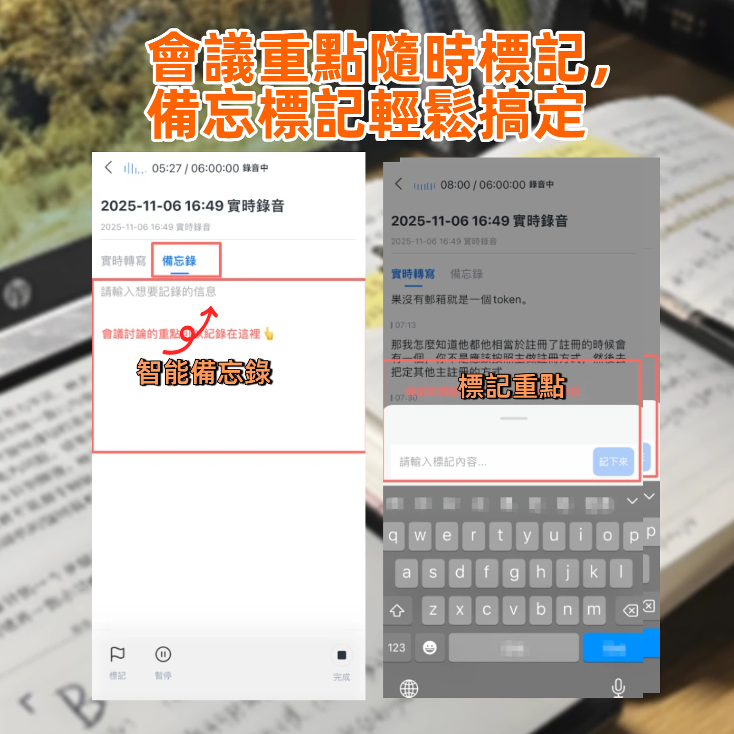 - 會後複習AI摘要:會議結束後立即查看「秒聽錄音」生成的摘要,標註重點、新增註解或分享給缺席者。