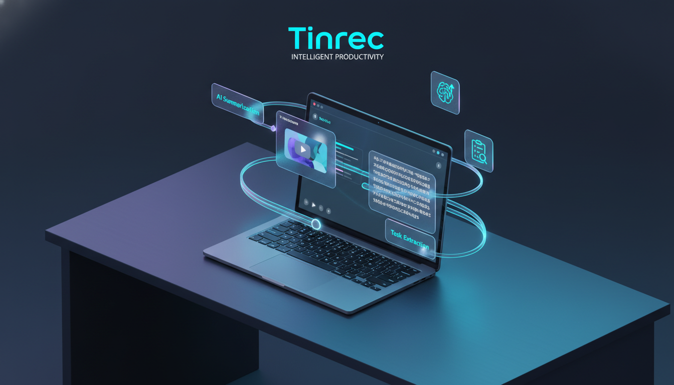 - 差異化特色: 許多工具只提供「逐字稿」,讀者看完還是要自己抓重點。Tinrec 的核心在於自動生成「會議/內容紀要」與「待辦行動項」,並支援 AI 對話查詢(例如直接問 AI:「影片中提到的三個結論是什麼?」)。