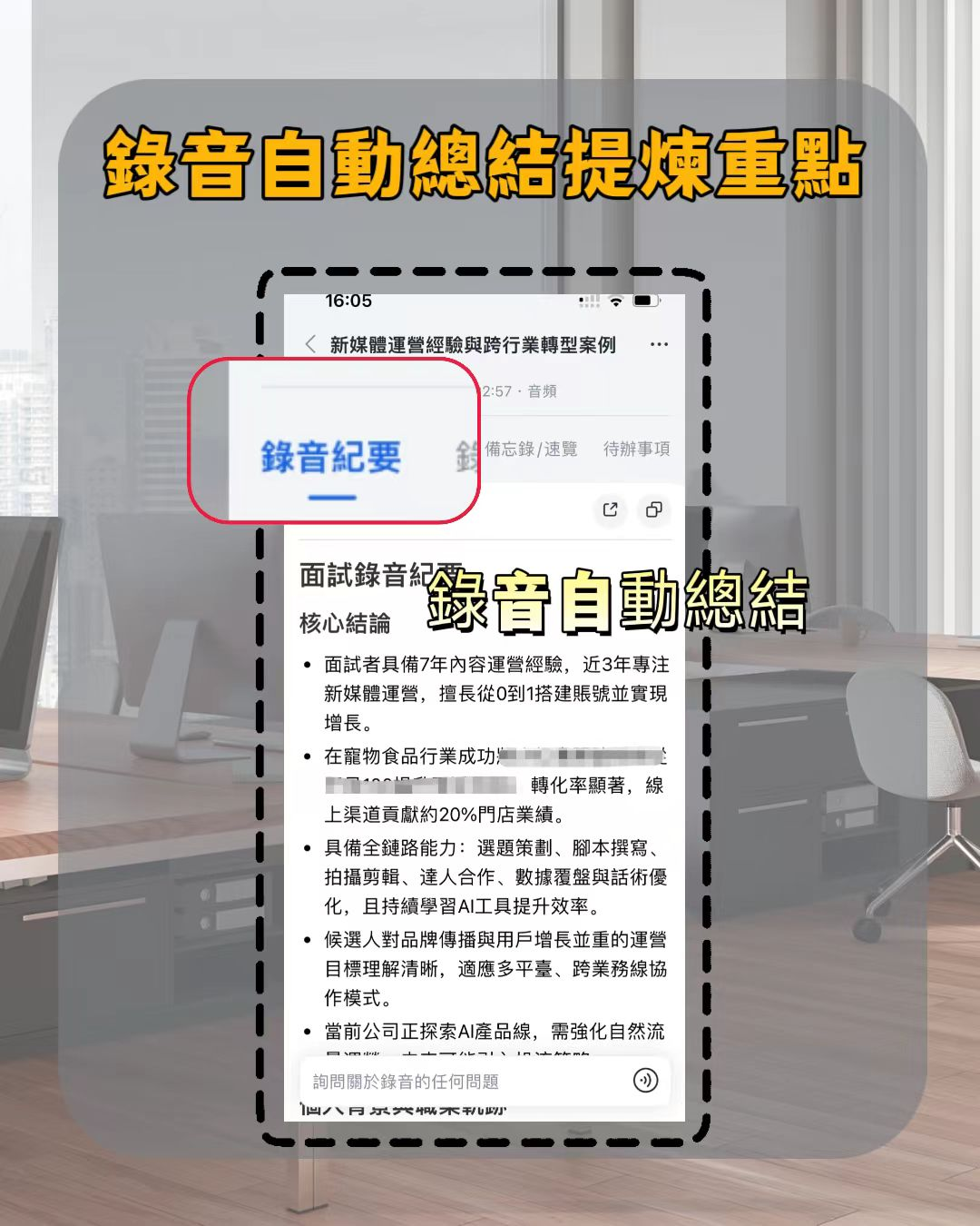 協調者應特別留意是否有未被回應的意見,並適時帶出討論。會議結束後,也可透過秒聽錄音的AI摘要功能,確認所有要點皆已被記錄與追蹤。