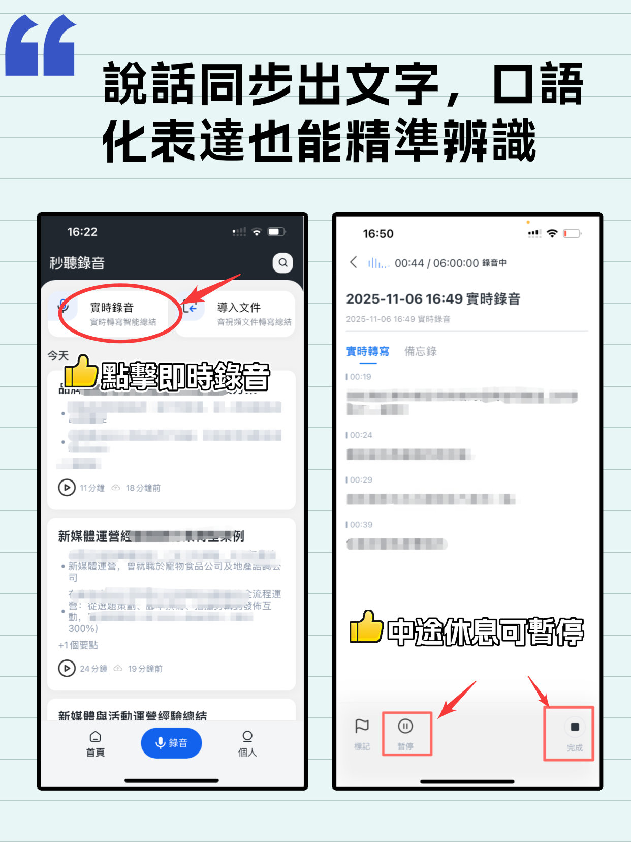 像秒聽錄音這類工具具備即時轉錄功能,特別適用於網路研討會或會議,能立即產出文字稿,提升內容可及性,無需等待。