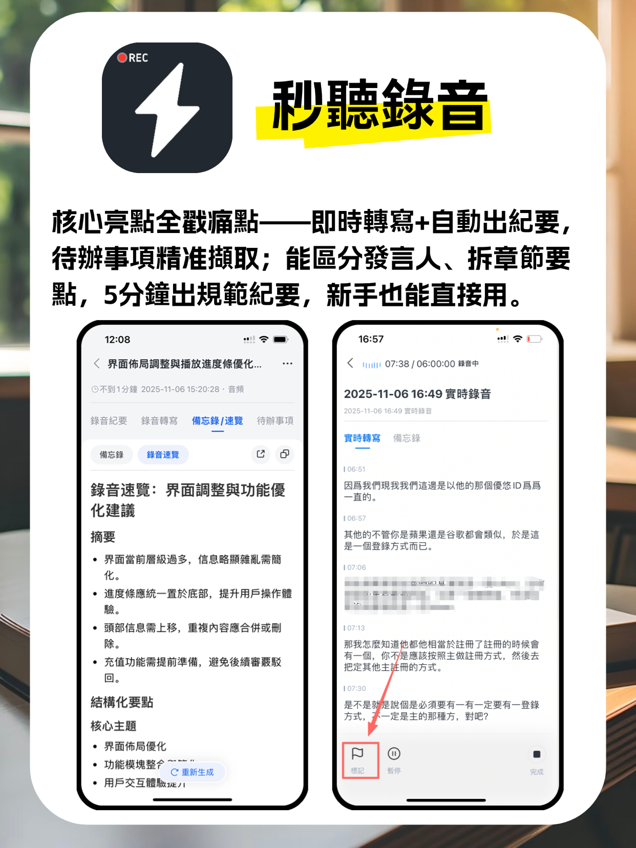 解決方案:善用高品質語音轉文字技術。秒聽錄音具備先進的音訊記錄與轉譯功能,即使在訊號不穩的情況下,仍能完整保存會議內容,並提供精準的文字紀錄。即使錯過重要通話,也能在恢復連線後回顧逐字稿,確保不遺漏任何關鍵資訊。這是秒聽錄音協助遠端工作者提升效率的方式之一。