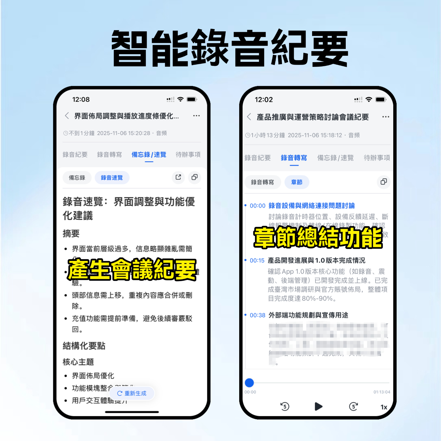 秒聽錄音可自動加入您的會議,即時將語音轉為文字,生成重點摘要,追蹤待辦事項,支援多國語言(中文、英文、日文、粵語、閩南語),適用於各種視訊平台。 - 依情況調整會議流程:議程是導航圖,不是鐵律。優先處理核心議題,預留緩衝時間應對延伸討論。若出現重要但偏題的主題,可記錄後另安排會議處理。