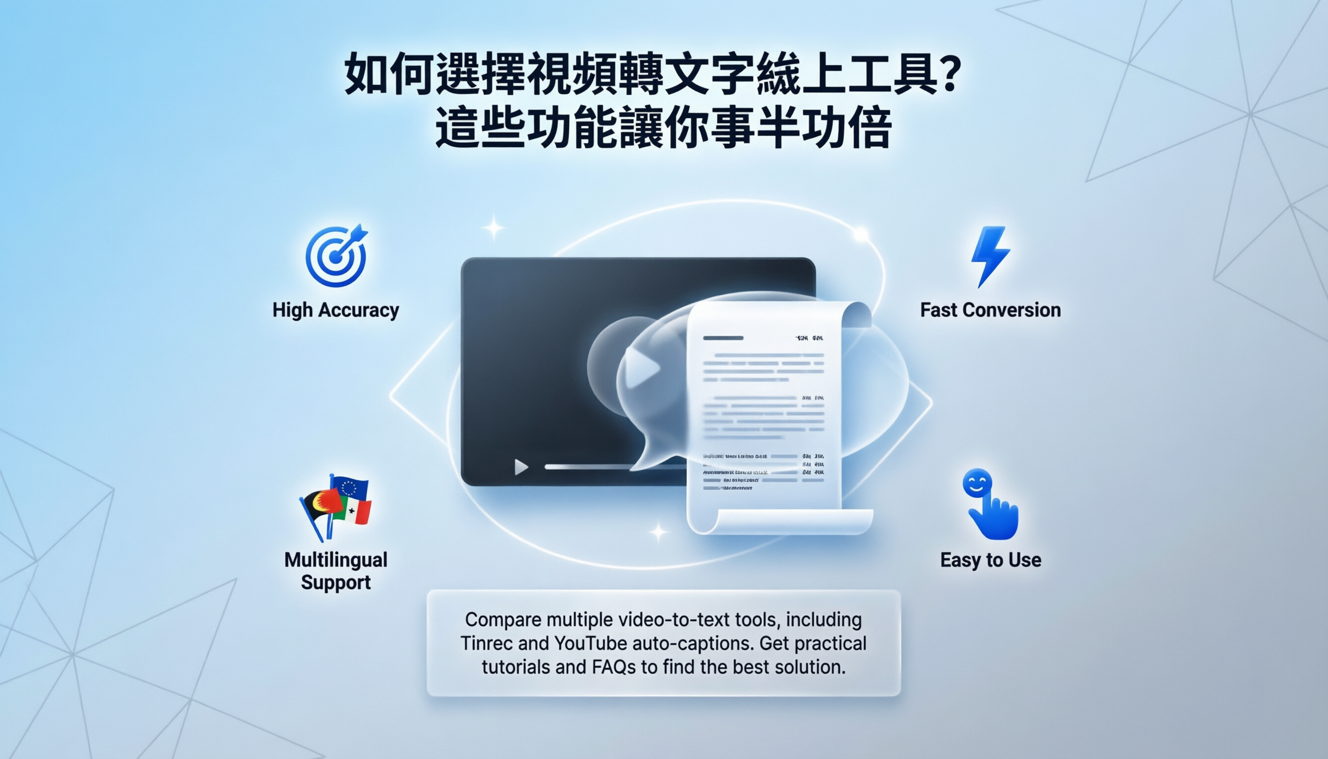 2026 YouTube影片轉文字繁體中文:Tinrec與其他工具比較