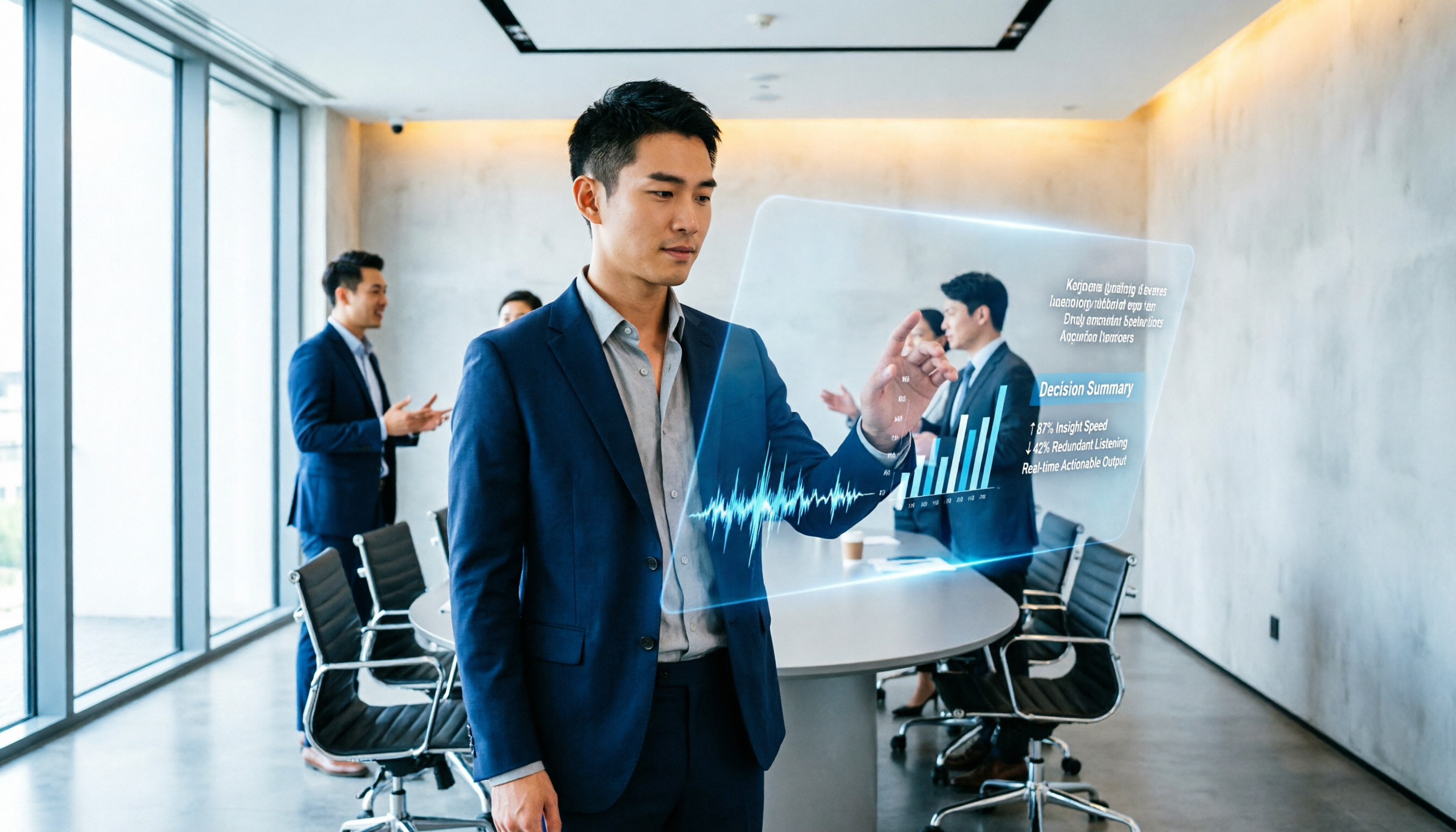 許多使用者誤以為有了逐字稿就完成了會議紀錄,這正是效率低落的根源。傳統工具產生的數萬字逐字稿,資訊密度極低,閱讀成本甚至高於重聽錄音。