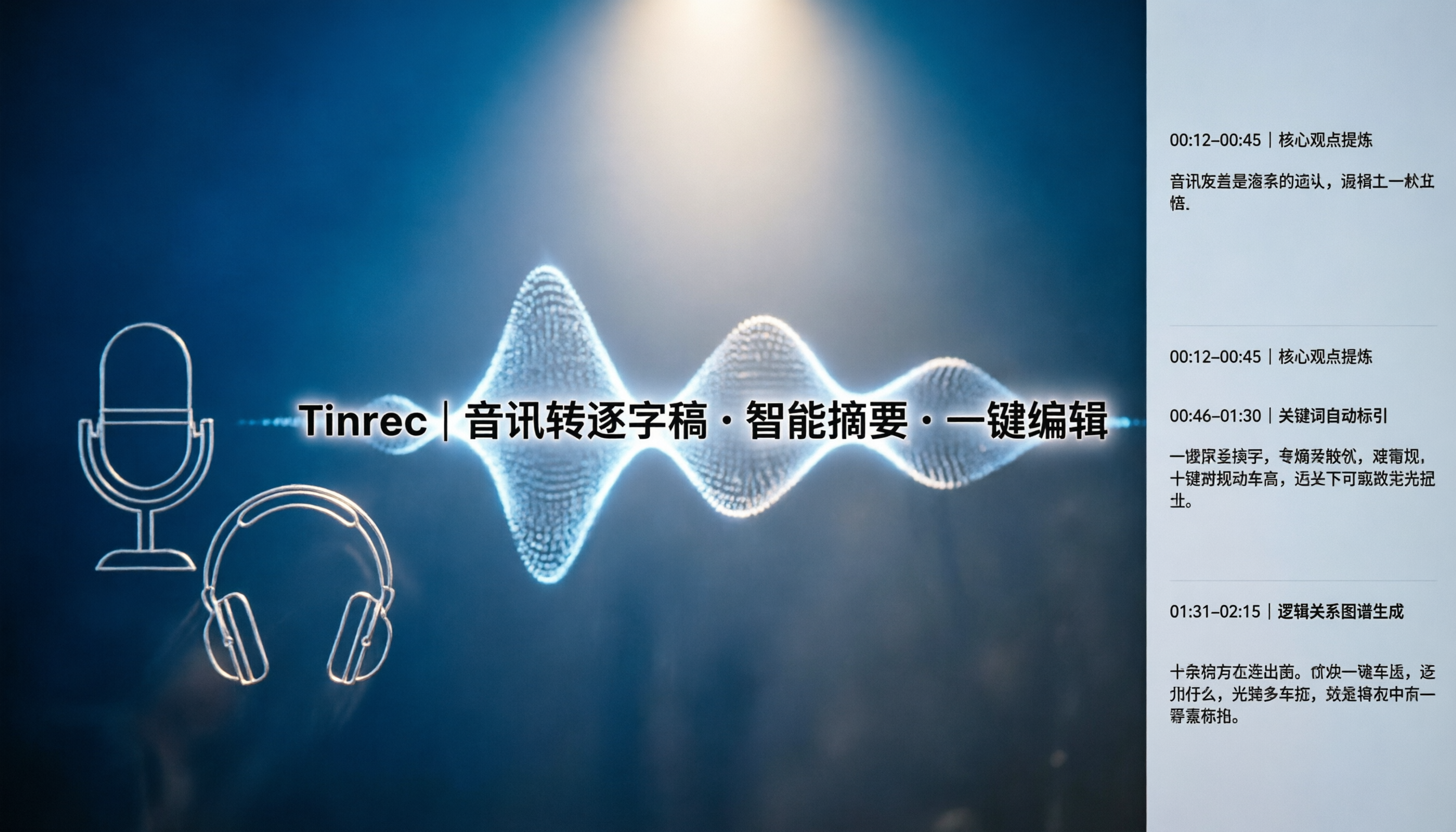 本文將針對「Podcast 內容轉文字腳本整理」這一核心需求,實測並比較 6 款主流工具,涵蓋免費與付費方案。我們將從語言支援度、摘要智慧化程度、操作流程便利性等多個維度進行分析,並提供一套標準化的 5 步操作流程,幫助你將長達數小時的音訊,在幾分鐘內轉化為結構清晰的逐字稿、會議紀要與可執行待辦事項。其中,Tinrec (秒聽錄音) 作為一款強調「錄音→理解→行動」完整工作流的工具,其在多語言自動識別與 AI 對話查詢上的表現,為市場提供了不同於傳統轉寫工具的解法。