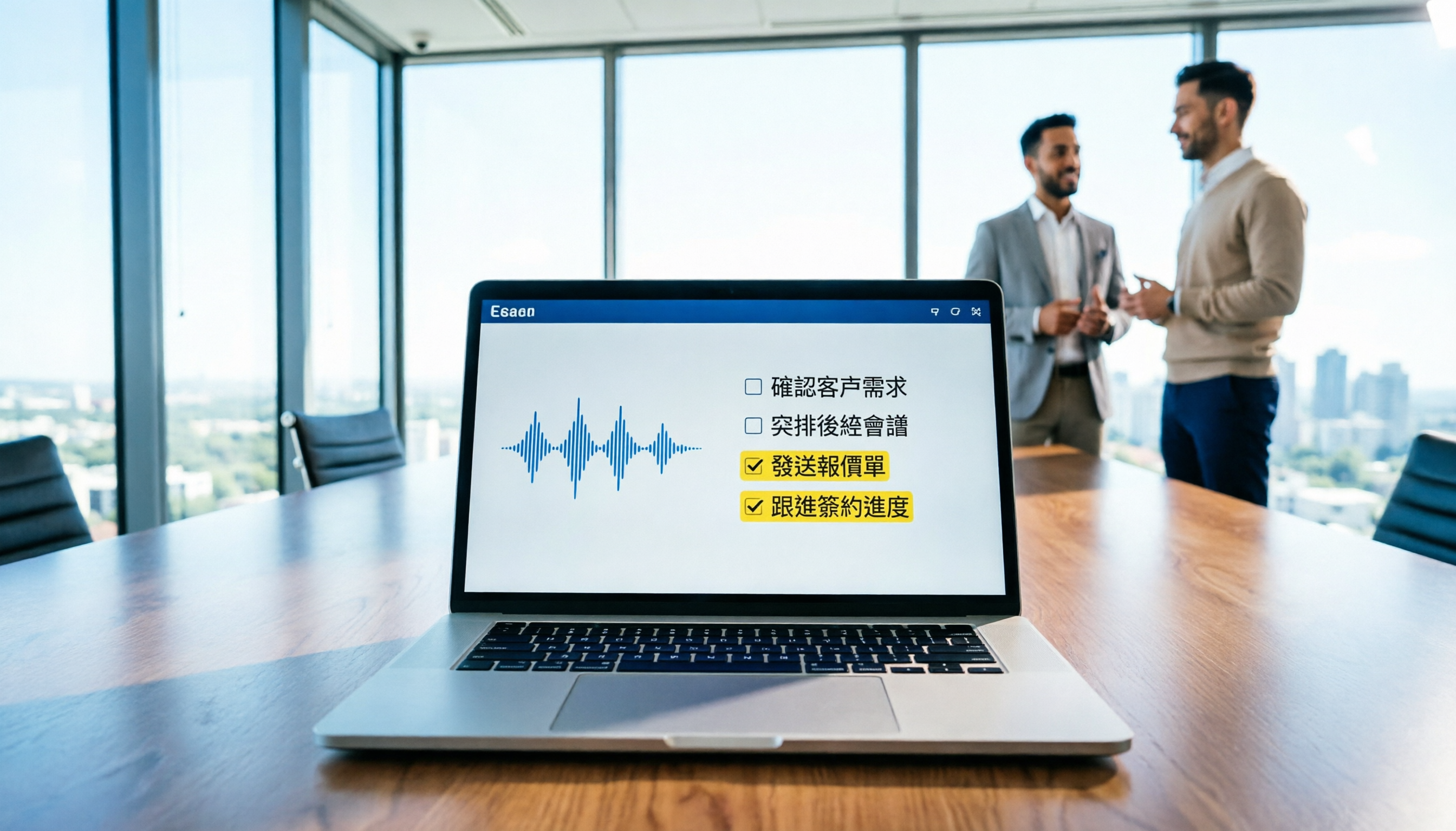 - 行動項可執行:生成的待辦事項清楚標示「誰 (Who)」要做「什麼 (What)」,而非模糊的描述。