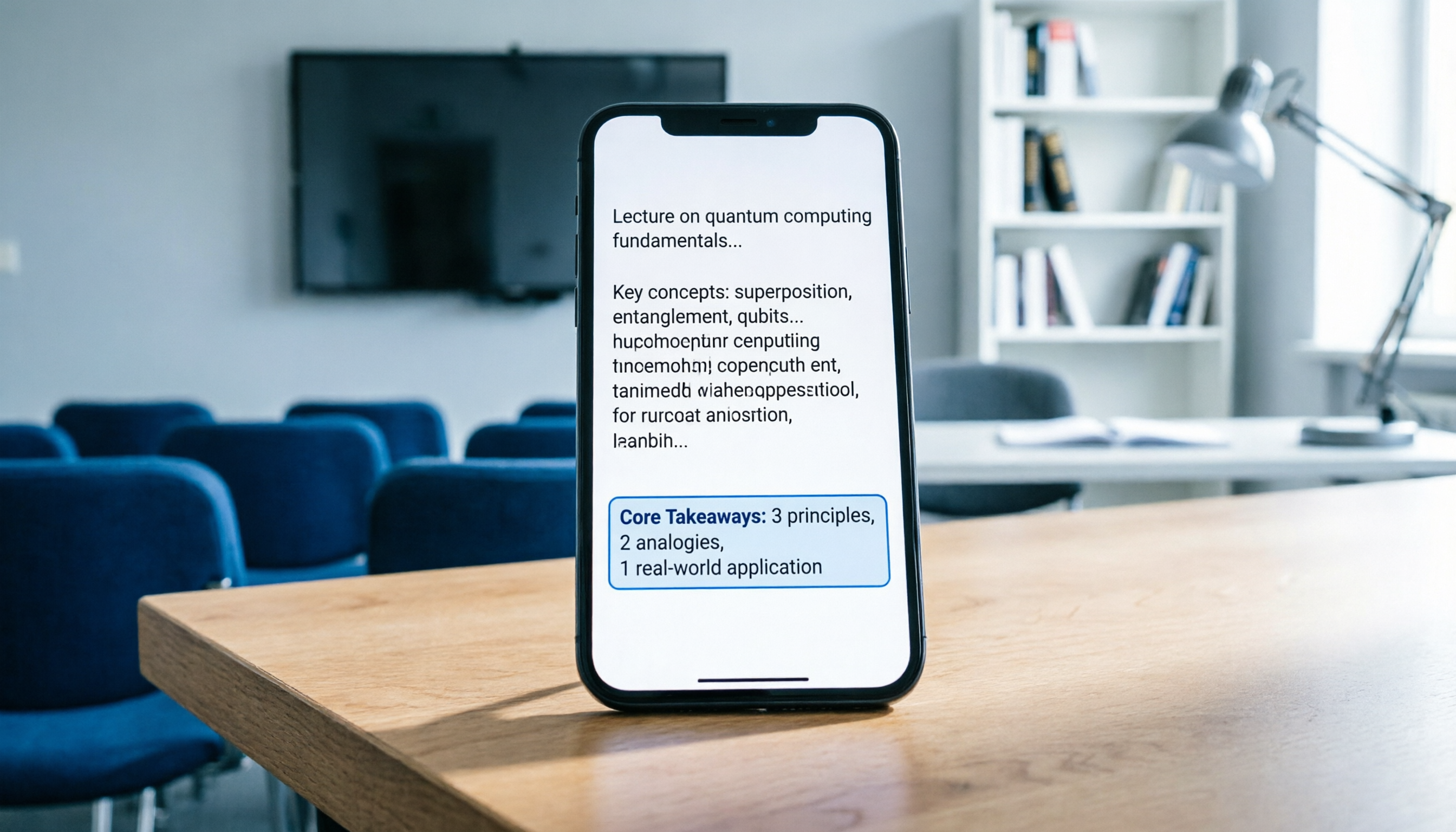 當需要複習特定章節時,傳統方式需拖曳進度條尋找。新一代工具應支援「AI 對話查詢」,允許用戶直接提問(例如:「教授剛才提到的三個理論是什麼?」),系統則基於錄音內容給出精準回答。
