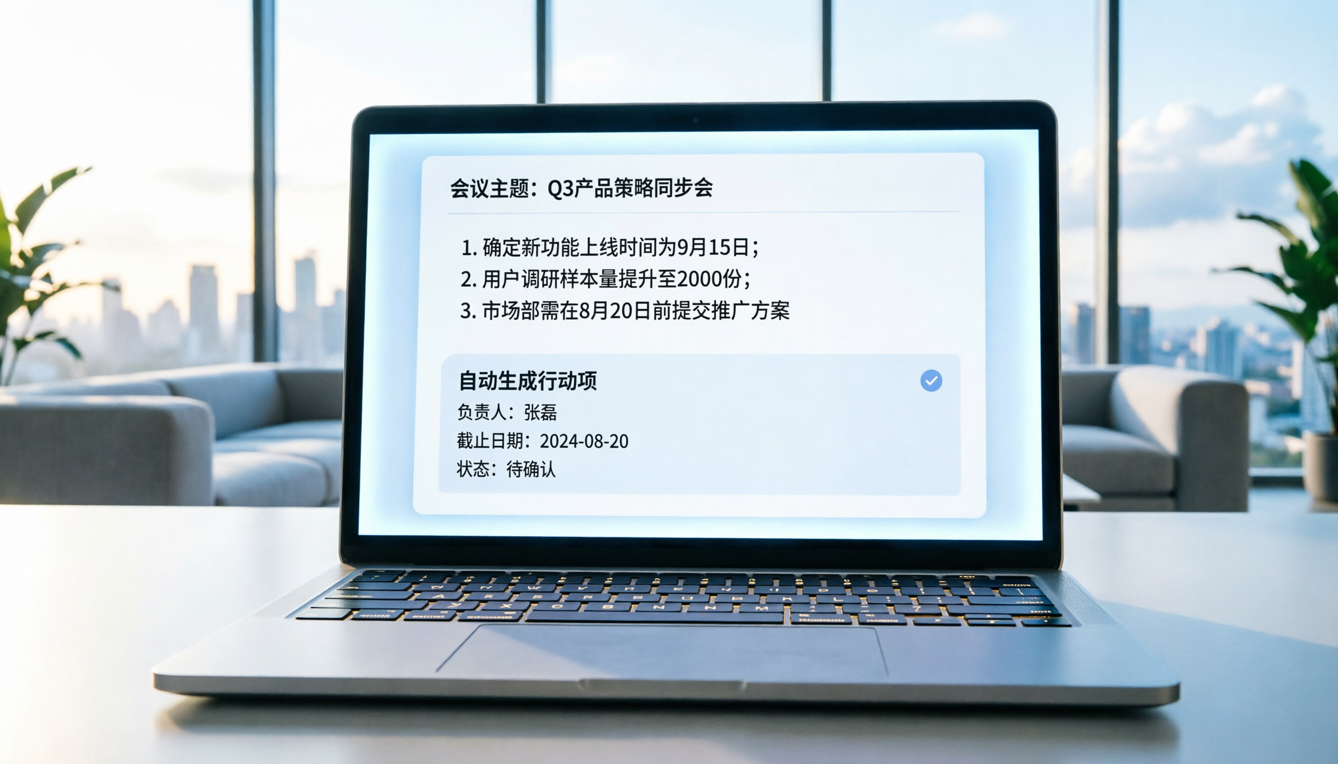 - AI 摘要與行動項提取:除了逐字稿,能否自動區分發言人、總結會議結論,並列出具體的 To-Do List?