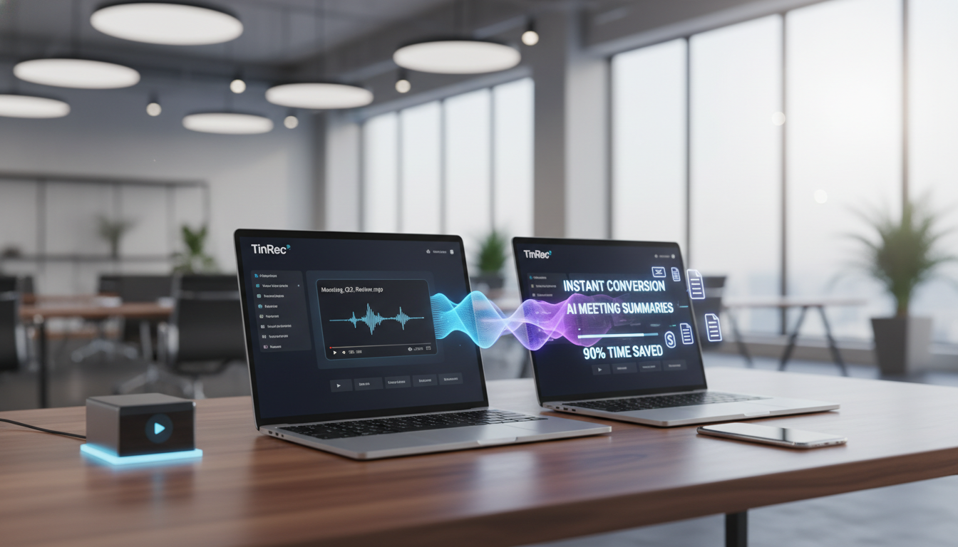 針對職場會議、採訪錄音整理以及影音內容學習,新一代的 AI 工具如 TinRec (秒聽錄音) 提供了更輕量且智能的解決方案。不同於傳統剪輯軟體側重於影片輸出,這類工具的核心在於將「聲音」轉化為「可行動的資訊」。