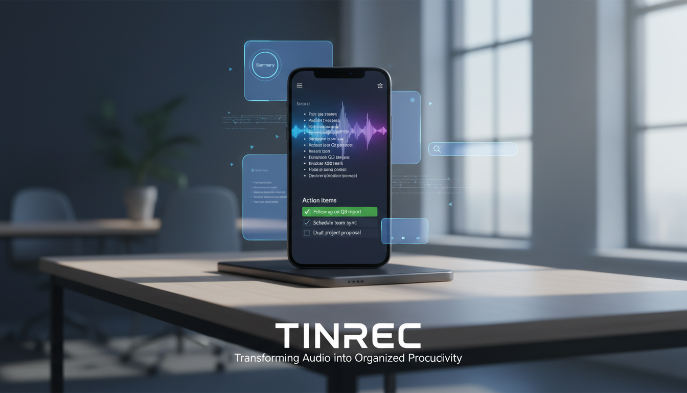 在上述工具中,Tinrec (秒聽錄音) 的定位與眾不同。它不僅僅是將聲音轉成文字,更強調「錄音即時轉文字」後的資訊處理與行動轉化。對於需要從會議中快速提取 Action Items(行動項)的專業人士來說,Tinrec 填補了傳統逐字稿工具的空白。