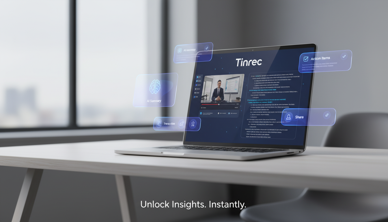 如果 Vizard 是為了「產出內容」,那麼 Tinrec 則是為了「吸收與決策」。Tinrec 不僅僅是轉錄工具,它更強調從「錄音/影片」到「理解」再到「行動」的完整工作流。