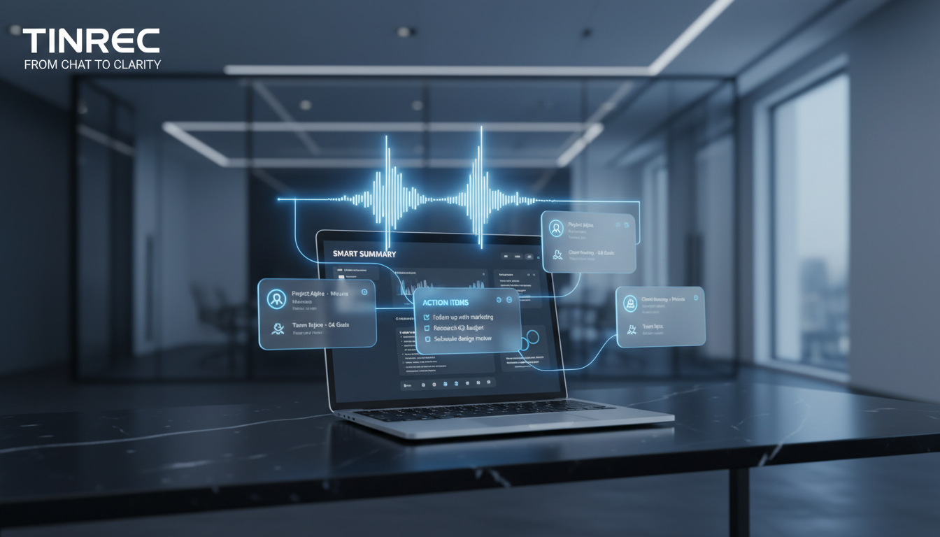傳統錄音最大的痛點是「重聽成本極高」。Tinrec 能自動生成會議紀要(Meeting Minutes)與待辦事項。你不需要重聽 1 小時的錄音,只需看一眼 AI 整理出的「下一步行動」,即可指派任務。