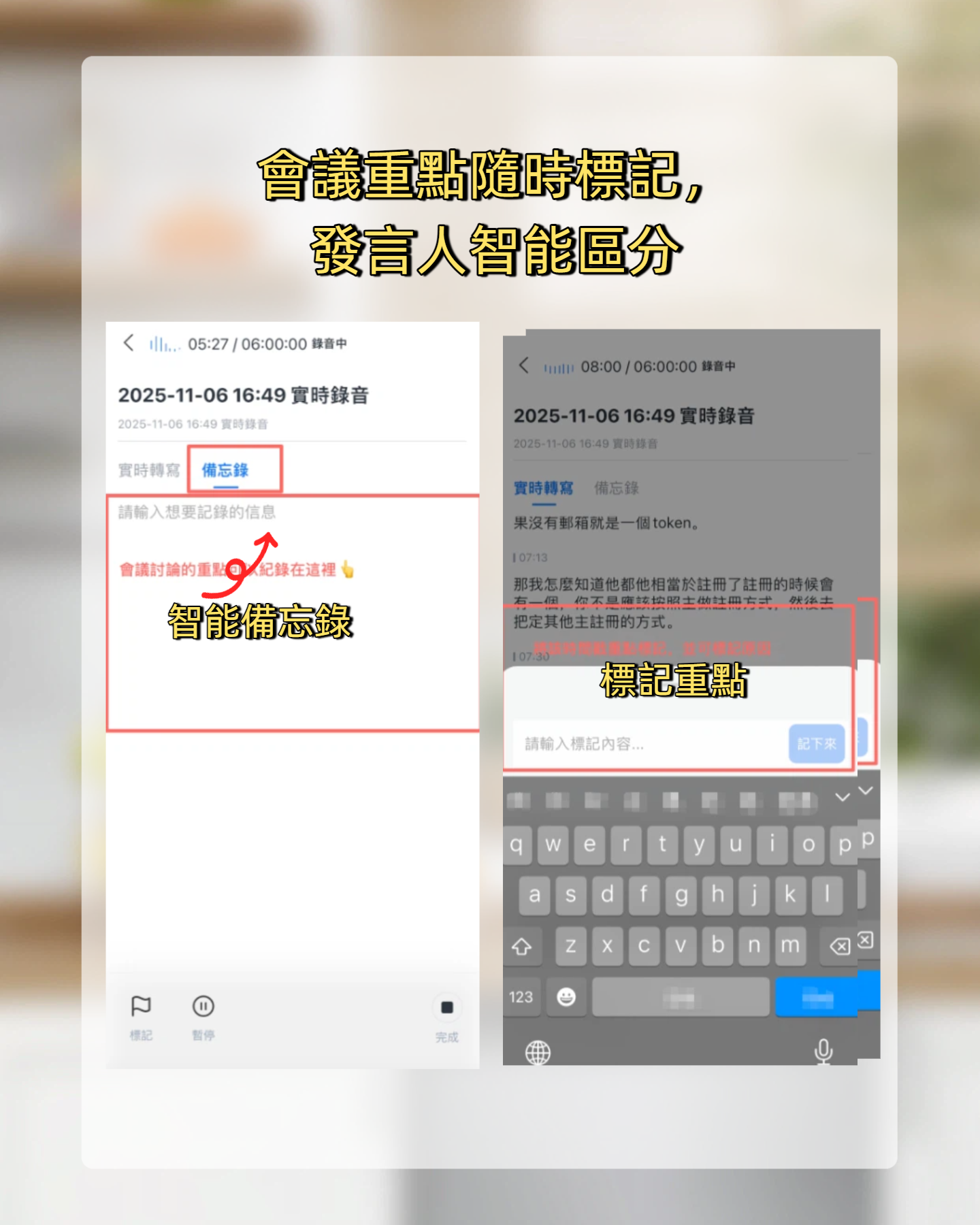 - 重點標註:自動標記會議中的重要時刻,方便日後查找。